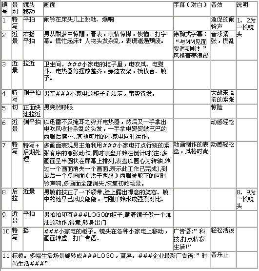 创意说明:约会要迟到了,在这紧要的关头幸好有###小家电帮忙。男主角利用###小家电出色及时完成他的形象塑造工程,为自己的爱情大事赢得了宝贵时间。片中演员前后的对比,运用产品时的夸张动作能很好地吸引观众眼球,又在轻松愉快的气氛中凸现了时尚科技的品牌特征。
