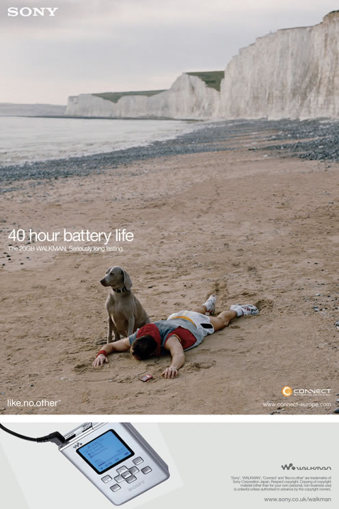 当前位置:中国广告人网站>创意策划>平面饕餮>详细内容 Sony Walkman平面广告 作者:广告导报 时间:2007-4-30 字体:[大] [中] [小]