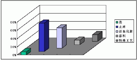 通过对颈肩腰腿痛患者认为功效的表现要素调查,止疼占到69%,活血化淤占到49%。