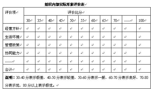 组织实际形象的评价分析指标可以采用百分制,并通过计算平均值求得。见范表