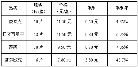 二、感冒药的零售价格以及零售药店可获得的毛利分析