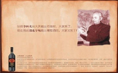 “包装不错,有点泊来品的味道哟,法国的吧?哎呀,陕西的,这哪能喝呀,几块钱?什么,你疯了,和长城价格差不多,那我为什么不去喝长城呢?”