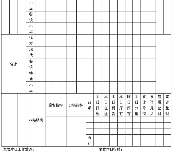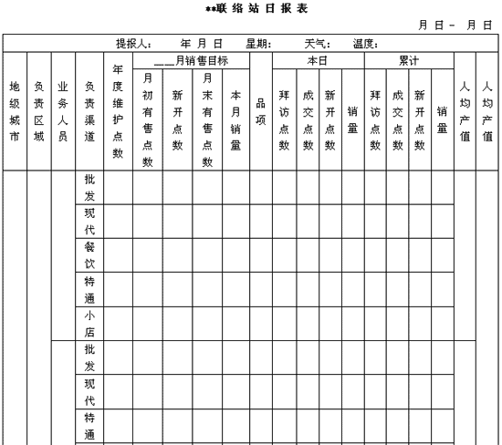 2、 日常管理:王老吉对业务员的管理主要是每日汇报制度,业务人员的日报表格式如下: