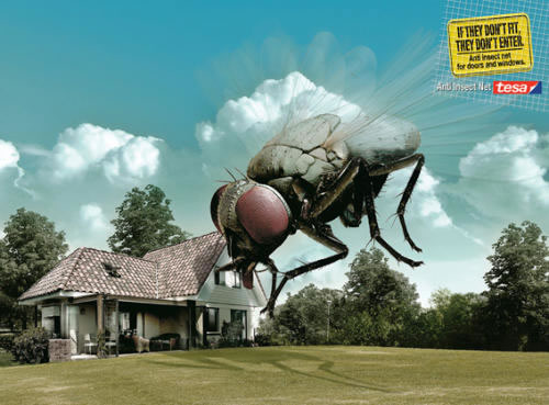 创意乱讲: 这是一组纱窗广告,缝很密,所以蚊子进不来。