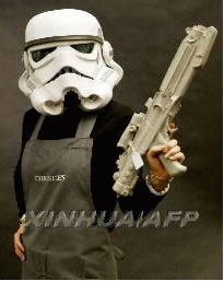 上图为伦敦克里斯蒂拍卖行将于12月16日拍卖影片《星球大战》的头盔和机枪道具