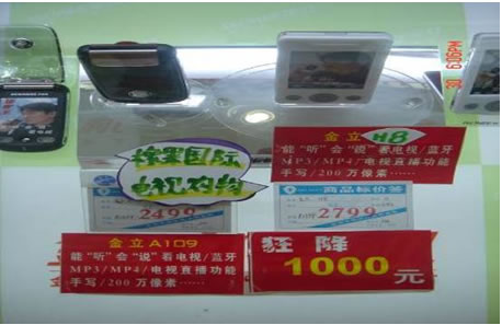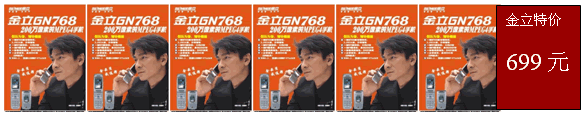 如金立A109型手机:能“听”会“说”可看电视、可手写、200万像素功能,贴于柜台内的手机前,让顾客一目了然。(见下图)
