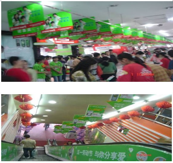 合作比较好的个别卖场,如果能悬挂金立促销吊旗,吊旗要一张紧贴一张整齐悬挂,吊旗的悬挂规范是,一排吊旗远看象一条横幅。