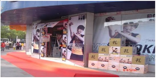 即使老对手摩托罗拉也只能在自己的专卖店门口辗转腾挪,施展拳脚。看来,科技以人为本的诺基亚已把本土化的终端拦截演练得炉火纯青。国产手机要要赢在终端别说搬走诺基亚、摩托这两座大山,五一促销,你想在手机连锁卖场多贴一张海报也成了非分之想。(见下图)
