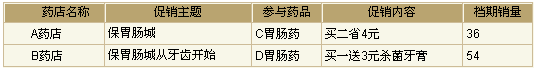 元的某品牌杀菌牙膏,美其名曰,“保胃肠城从牙齿开始”,而这盒牙膏的采购成本价却只有2元,所花费的促销成本与A药店相同。 经过一个月的活动,结果是B药店D胃肠药的销售量高于A药店的50%!