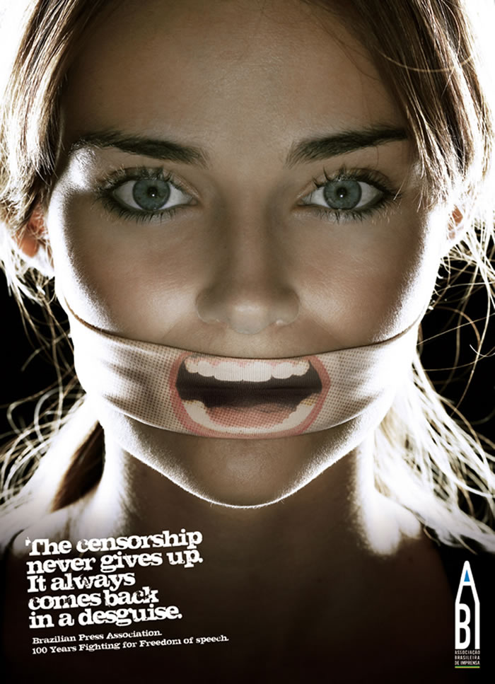 The Censorship never gives up. It always comes back in a disguise.Brazilian Press Association. 100 years fighting for freedom of speech.
