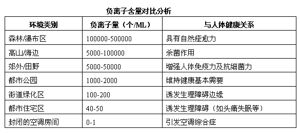 树林中富含被称作“空气维生素”的负离子,人们感到空气的清新、呼吸的顺畅都取决于负离子的含量,负离子随着空气进入人体后,能改善神经系统、心脑血管系统和呼吸的机能,还具有镇静、催眠和降低血压的作用。即使是身体强壮的人们,也需要经常从空气中吸取负离子使精力更加充沛。