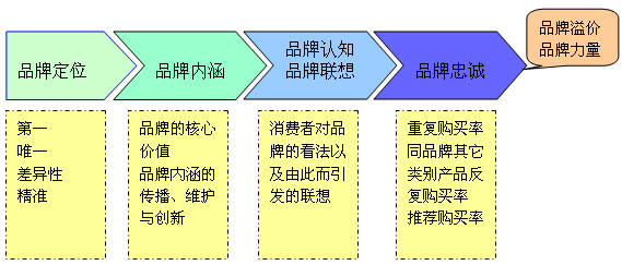 再强大的品牌也不是一蹴而就的,而是经历了一系列的过程和长期的精心维护。打造一个强大的品牌大致至少包含以下几个方面:品牌定位、品牌内涵、品牌认知和品牌联想、品牌忠诚,通过上述这几个方面持续不断地努力,才有可能打造一个强大的品牌,最终获得品牌的溢价和品牌的力量。