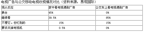 同时,相比于分众传媒显示屏前平均每人只有几秒的驻足时间,公交车上的“移动电视”的观众常常有长达20分钟乃至一个小时的观看时间,很难想象观众会在这么长的时间内始终盯着“无聊”的广告,因此,内容的深度和吸引度决定了公交移动人群对节目和广告的接受程度。