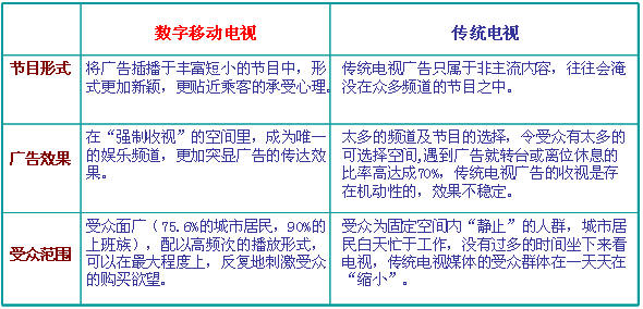 公交移动电视与传统电视节目形式以及广告效果和受众范围的对比