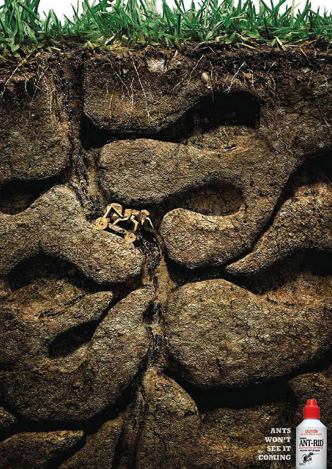 这个蚂蚁王国的蚂蚁们已经没有未来了,因为它们运进了一台装满ANT-RID杀蚁药水的木蚂蚁。这种药水有股蜂蜜的味道,把它滴在蚂蚁们经常路过的地方,工兵蚁很快便会聚集起来把它搬回洞里。接着就会发生非常残酷的“非暴力种族灭绝行动”了。。