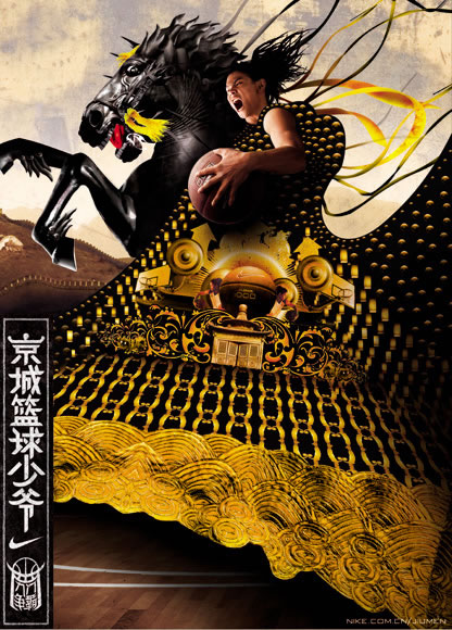受啟于北京人獨有的“皇帝”情結及北京籃球中體現的中國文化,耐克九門爭霸聯賽因此誕生。籃球文化和中國元素的顛覆結合,迸發出奇妙的視覺效果;充滿霸氣的“京城籃球少爺”頭銜更是將耐克籃球精神傳達得淋漓透徹。