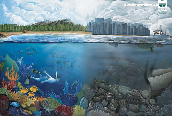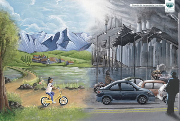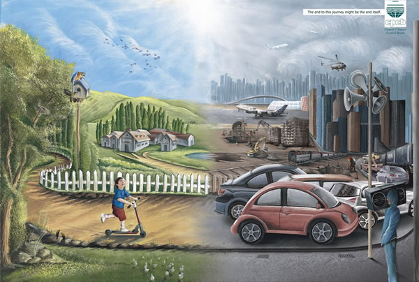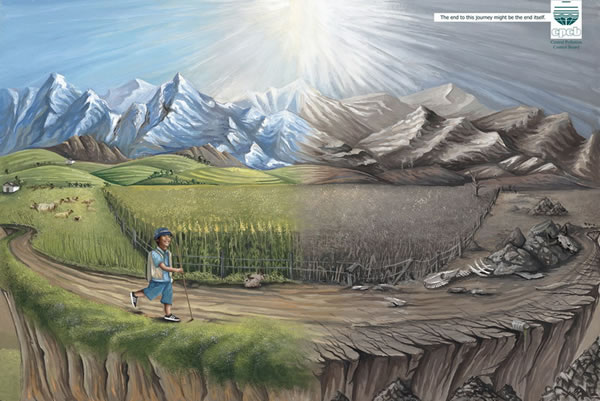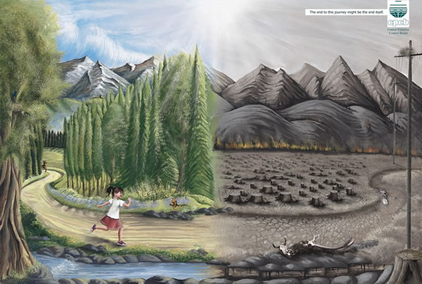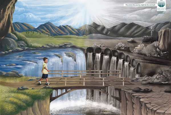 中央污染控制委员会的公益广告很直观地告诉我们要保护环境,要不然结束这段旅程之后有可能就结束了自己。