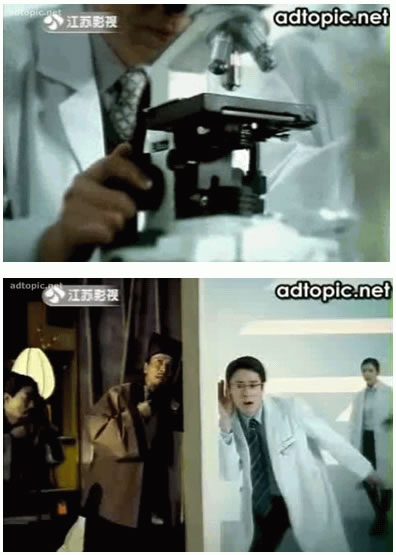 广告是用每个中国人都能看懂的画面表现了保护牙齿的两个极致面,古朴的画面中描述的是传统中医的求索,现代的画面描述的是西医的实验。镜头拉开,两个苦思冥想而不得其解的团队挤在一个长长的空间里,中间一堵墙把他们分成了一黄一白两个世界,长长的空间和一盒牙膏的形体极为相似,这为汉草萃牙膏的诞生埋下了伏笔。当两个世界杯彻底打通后,双方都被对方吓了一跳,最终两个团队合作研制出了汉草萃牙膏。