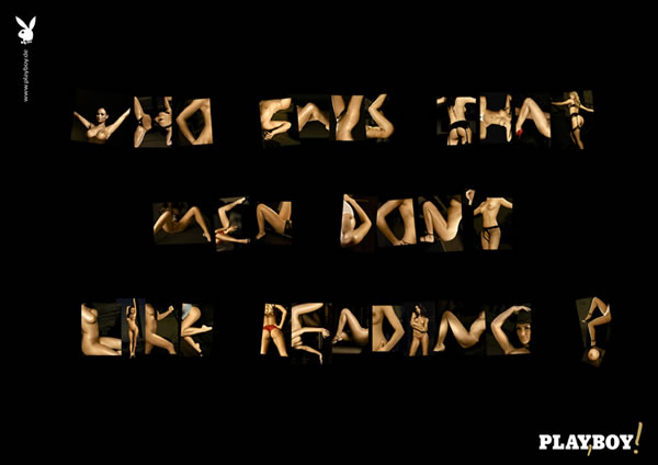 当前位置:中国广告人网站>创意策划>平面饕餮>详细内容 Playboy广告 谁说男人不喜欢阅读? 作者:佚名 时间:2008-4-3 字体:[大] [中] [小]