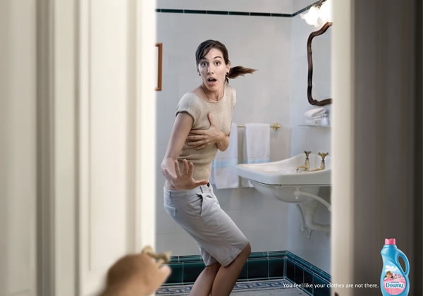 她们穿着Downy柔顺剂洗过的衣服,由于太过于柔软,让她们觉得自己没有穿衣服。