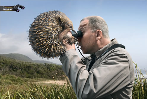 一款专门为户外运动爱好者准备的双筒望远镜,就好像小动物贴着你一样清楚。挺一般的想法,nikon以前用过,不过执行还是蛮漂亮的。JWT悉尼出品。
