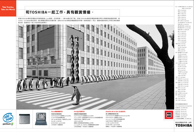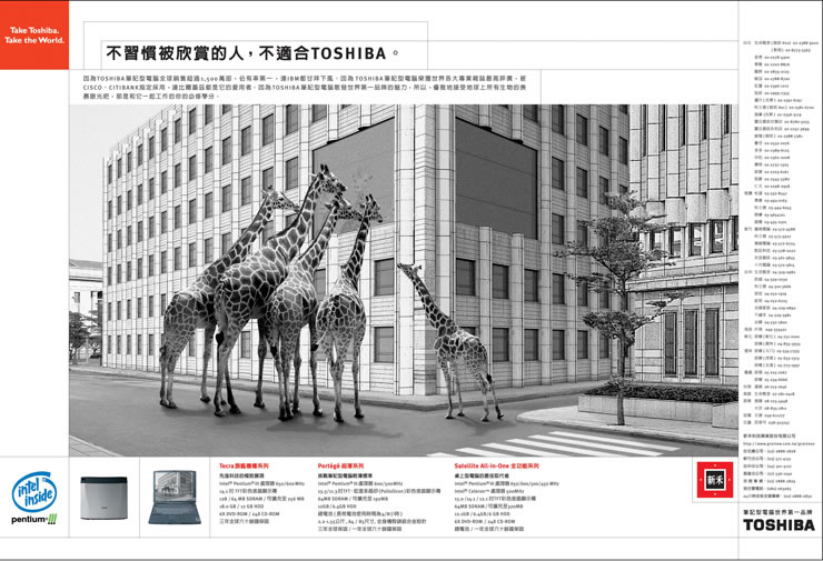 当前位置:中国广告人网站>创意策划>意识形态>详细内容 意识形态专题-新禾-长颈鹿、企鹅 作者:佚名 时间:2008-6-27 字体:[大] [中] [小]