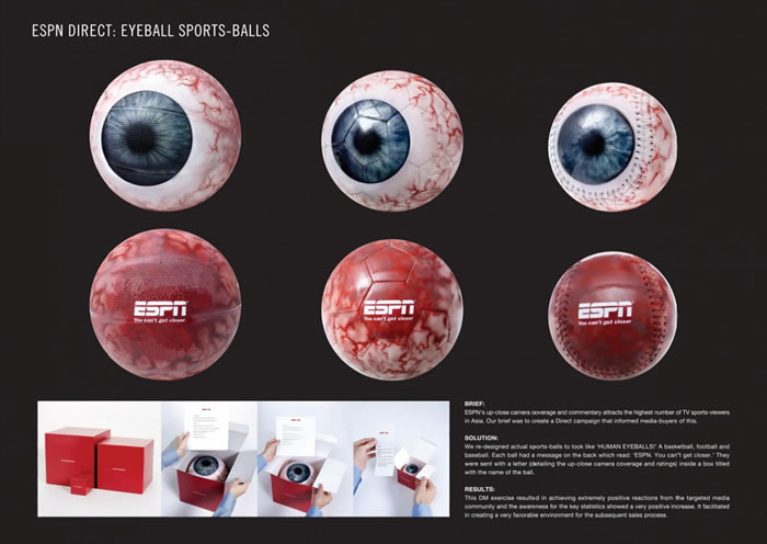 这是ESPN的广告,你离得太近的话,眼球会变成篮球、足球的形状,排球