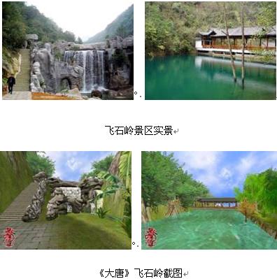 杭州天畅科技与旅游景点飞石岭合作,专门开发一个仿真的全3维飞石岭游览地图,把整个飞石岭虚拟景点植入全3D民族网络游戏《大唐风云》之中,从而达到一种身临其境般的网络旅游的奇效。天畅玩家两百万之众,飞石岭景区等于向这两百万之众发出了邀请。