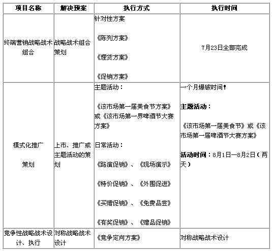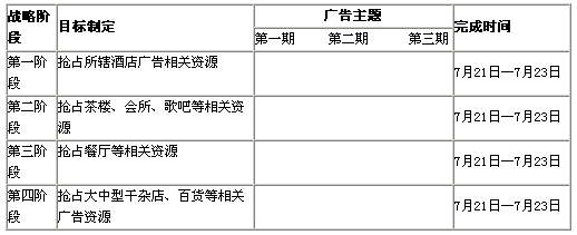 本方案强调执行者的有效资源与坚决的执行力,为更好扩大视觉冲击力,充分进行市场预热,四个阶段建议同步进行、同时完成,以便为广铺货打下坚实基础!