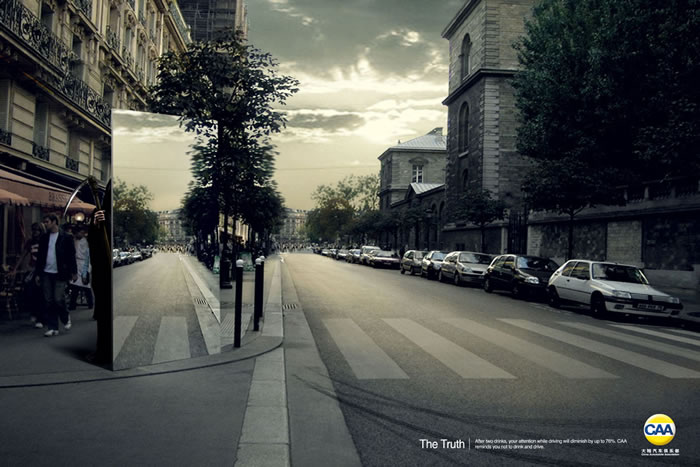 The truth. After two drinks, your attention while driving will diminish by up to 76%. CAA reminds you not to drink and drive.