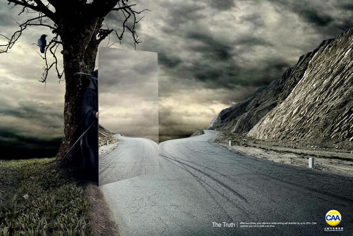 The truth. After two drinks, your attention while driving will diminish by up to 76%. CAA reminds you not to drink and drive.