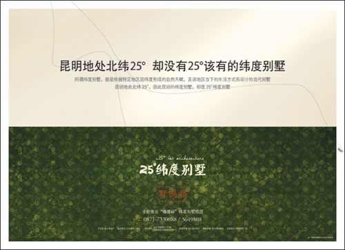 昆明地处北纬25°,因此昆明的纬度别墅,即是25°纬度别墅