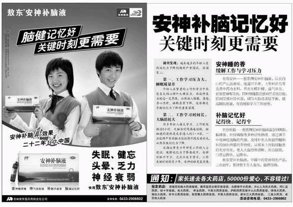 传播三大步,从内容、从形式、从节奏,都紧扣传播拉动的主线,在功能教育的基础之上,以“一天两支”来号召购买;针对销售的重点高考市场,以活动的形式,与平面互动,深度传播,拉动市场销售;同步地面传播推出“疗程概念”,提升终端单次销售,一高一低,一上一下,环环相扣,达到安神补脑全年传播的高峰。