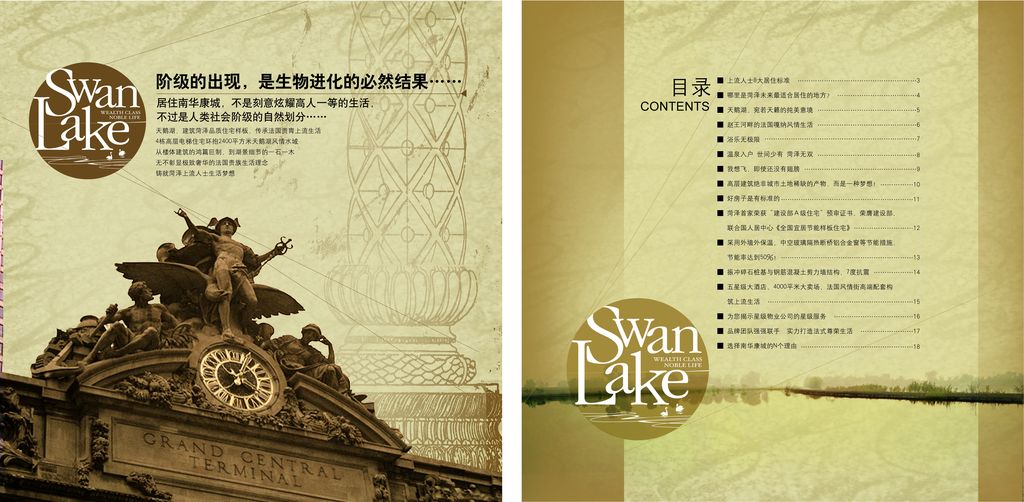 该楼书左侧偏重形象表现、右侧偏重务实介绍