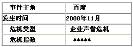 在此次“勒索营销”危机事件爆发之前,2008年对于百度来说已经是多事之秋。在10月31日,北京某律师把一册16开本厚达91页的《反垄断调查申请书》,送到了国家工商总局反垄断处一位官员手中,申请对百度滥用市场支配地位的反垄断调查。