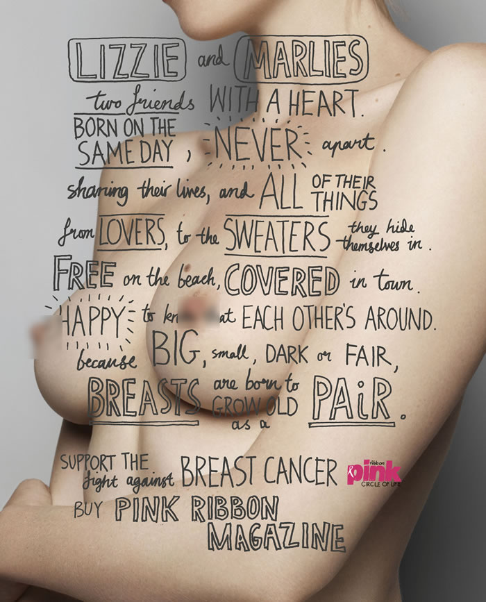 当前位置:中国广告人网站>创意策划>平面饕餮>详细内容 粉红丝带杂志平面广告(1) 作者:佚名 时间:2009-10-14 字体:[大] [中] [小]