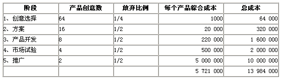 事实上,产品创新的成本是很高的,下面的表格是国外一些专家列出的关于产品创新的步骤以及成本的一个表格(金额为美元):