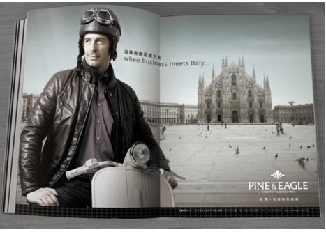 以“创意”为核心,以意大利为元素,设计出一系列别出心裁的创意画面,选取目标人群接触频率较高的高端媒体,《南方航空》、《旅伴》等杂志,进行投放。同时,采纳还专门挑选意大利男模,以商务邂逅意大利后一切美好的想象为线索,为松鹰拍摄了一支生动的影视广告。