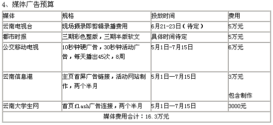 公交电视、高校宣传栏、云南信息港、都市时报、各式宣传品