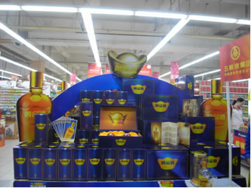 我们去了家乐福,经过若干场戏的推演完成了黄金酒的标志、包装、陈列、堆头的设计。