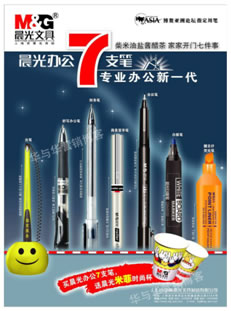 04年华与华开始和晨光文具合作,至今已进入第6个年头了。今天晨光已成为中国遥遥遥遥领先的制笔业第一品牌,并在08年获得了中国杰出营销奖金奖。在参赛演讲时,我特别提到了04年为晨光定位品牌时,关于产品本质的讨论。