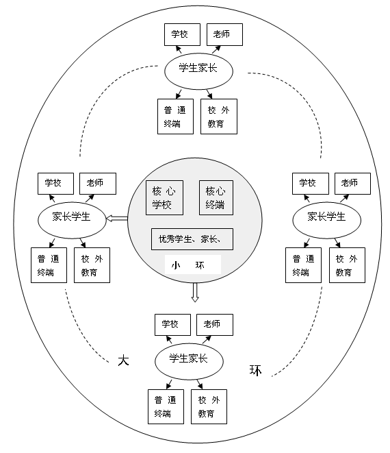 教师、优秀学生(三好等)等具有引导作用的群体为小环,整体消费者为大环,以小环引导大环。