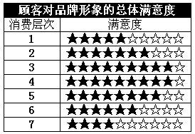 在广告语、广告人物和广告情景三大要素上,各自对广告所传达出来的品牌形象的影响程度是有所差异的。比较而言,我们认为此广告中广告语、广告人物、广告情景三大要素对广告形象的影响力比重大约在2:4:4左右。按照这一比例,此广告总体上对于各层次消费者而言的满意度统计结果大约如下: