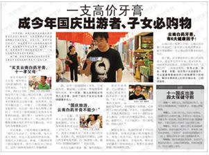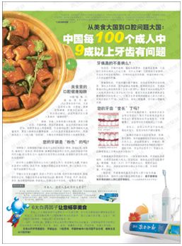 如:针对广东市场,3篇软文刊登在《南都周刊》,《广东人的牙怎么了?》、《广东人为牙着急?》、《广州、北京、重庆等“上火高发区”兴起口腔保健新潮流》。