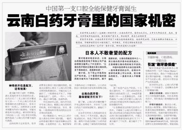 这一系列新闻式广告,对市场销售的拉动甚至出乎我们的意料。以湖南为例,第一期广告《一支新型牙膏来到湖南》、《云南白药牙膏里的国家机密》刊登后,第二周终端销量就出现爆发式增长,在走访中,我们看到,很多消费者拿着报纸到终端找云南白药牙膏,而当时云南白药牙膏只有一个品类,在终端的排面只有一竖条,和佳洁士等“洋牙膏”在终端的排面比是1:10,而在两周后,云南白药牙膏凭单支品类牙膏,KA卖场日均销量最高峰达每日200支,是当日佳洁士和高露洁系列牙膏的销售额总和。