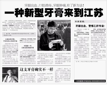 还有一些新品上市的启动感广告,力求给消费者强烈的发现感和上市冲击。如《一支新型牙膏来到XX(地名)》,最大化地吸引目标消费者的关注。在媒体选择上,我们选择各市场发行量最大的市民类报纸,在周五刊登,这样能直接拉动终端卖场在周末的销量。