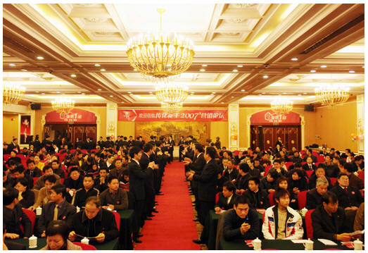 在客户的心灵还沉浸在高度的兴奋状态中时,蔡阳春从价格,促销、广告和人员等多方面介绍了公司2007年的营销思路和政策,以及全员营销和营销人员更进一步深入市场的指导思想和操作思路。