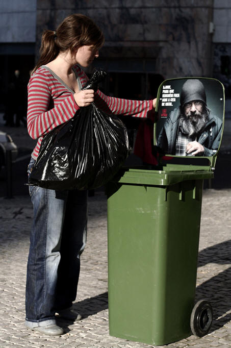 这是葡萄牙McCann为葡萄牙Vitae流浪者庇护所(Vitae homeless shelter)开发的新媒介,在圣诞节期间进行投放。在人们每天接触的垃圾盖上,印着标志性的流浪汉头像,广告语很简单:给予帮助!他们就不用再来这里觅食(Help。So that no one have to come here for food)。