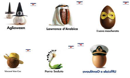 在2001年至2004年间,艾斯兰加在原有的广告策略基础上,不断推出新作品,期间共发布40幅。这一阶段的作品采用了“旧元素新组合”的组合式创意手法,跨越果蔬食品和其它商品元素,以系列“人物”造型为广告添加了更多趣味和文化内涵。这次海报不但模仿了诸多名人,如戴着太阳眼镜的“John Lemon”柠檬先生,或者是与梵高一样具有画家气质的"Vincent Van Coc"椰子艺人等,还天才般地将果蔬本身的名字神奇地嵌入作品名称中,与表现的人物名字形成字面上的神似,这可视作创意的一大绝妙之处。如作品“Agente 00Fette”就是由“Agente 007”(007特工)和面包fette(切片)组合而成,作品“Aglioween”则由“Halloween”(万圣节)和“aglio”(大蒜)组成。