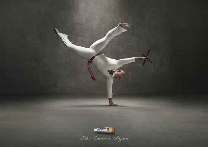 Voltaren(服他宁,一款消炎止痛药)自推出至今已有接近30年,是为瑞士诺华公司旗下一优质产品,广告中展示了芭蕾舞、卡波耶拉(巴西非裔移民所创的巴西战舞)、瑜伽三种舞蹈动作